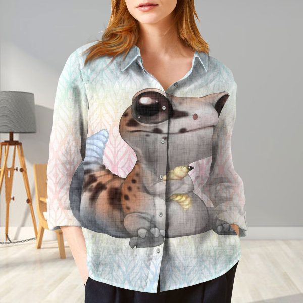 African Fat Tail Gecko Long Sleeve Casual Shirt S 5xl